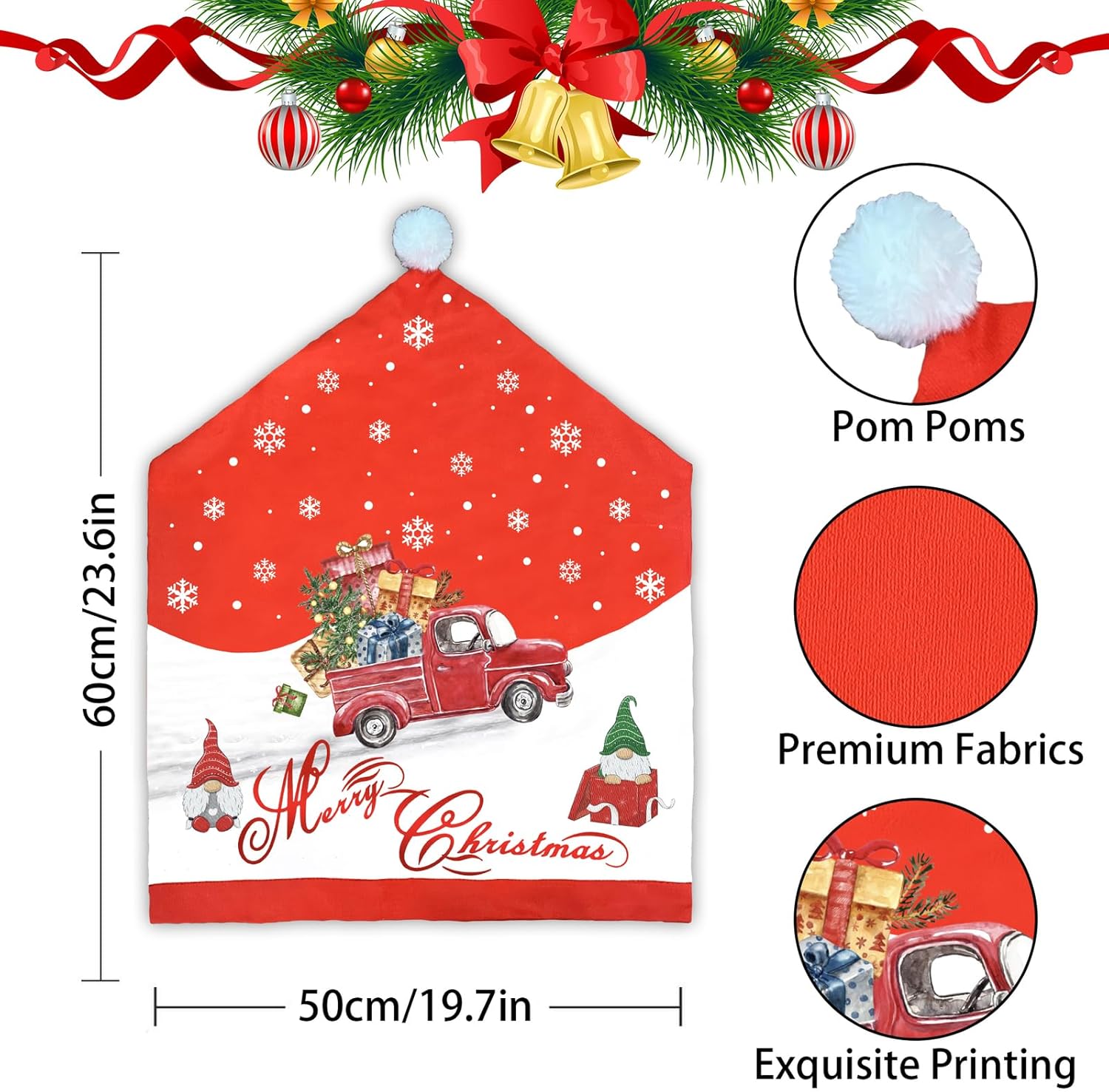 🎄【Alta calidad】Hecho de poliéster suave y duradero, el material de primera calidad combina durabilidad con un tacto suave que es muy cómodo para apoyarse. La funda para silla es duradera y reutilizable. Mantiene su belleza incluso después de lavados frecuentes., 🎄【Diseño navideño vintage】Esta funda de asiento adopta colores clásicos de Navidad, incorpora una variedad de elementos navideños, y está diseñada con un sombrero de Papá Noel, con pompones de felpa blancos en la parte superior, creando un fuerte ambiente navideño para ti y haciendo que la mesa de comedor se vea más acogedora y hace que la cena de Navidad sea aún más divertida., 🎄【Elige tu juego】Elige entre nuestras opciones de paquete de 2 o 4 unidades para garantizar que cada silla en tu fiesta irradia el encanto de la temporada. Las fundas de asiento miden 23.6 x 19.7 pulgadas, las fundas para sillas de Navidad tienen un tamaño para adaptarse a la mayoría de respaldos de sillas, estas fundas se fijan fácilmente a las sillas y añaden al instante un toque de magia navideña y estilo decorativo a tu hogar., 🎄【Feliz Navidad】Estas fundas para sillas son la mezcla perfecta de durabilidad y moda, úsalas para añadir un toque encantador a tu comedor. El vibrante gráfico de la funda de la silla cobra vida, y la excelente retención del color garantiza que la impresión vibrante se mantenga viva temporada tras temporada., 🎄【Interior de decoración navideña】Las fundas para sillas con sombrero de Papá Noel tienen un aspecto festivo y una textura confiable, y ya sea que estés organizando una cena íntima o una fiesta de vacaciones, estas fundas crean un ambiente acogedor y acogedor que se adapta perfectamente a la temporada navideña. Ampliamente adecuado para varias ocasiones, como fiestas de Navidad, cenas familiares, eventos escolares, decoraciones de banquetes, hoteles, bodas, celebraciones.