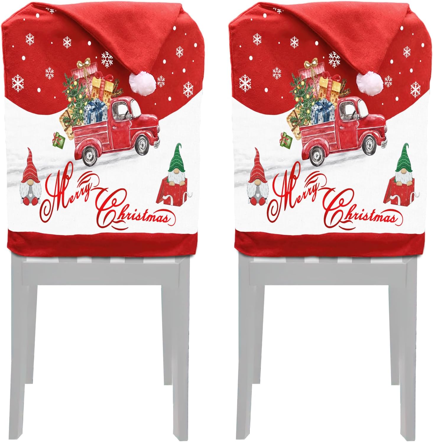 Juego de 2 fundas para sillas de Navidad, fundas para sillas de Navidad, fundas para sillas de Papá Noel, decoraciones navideñas para sillas de