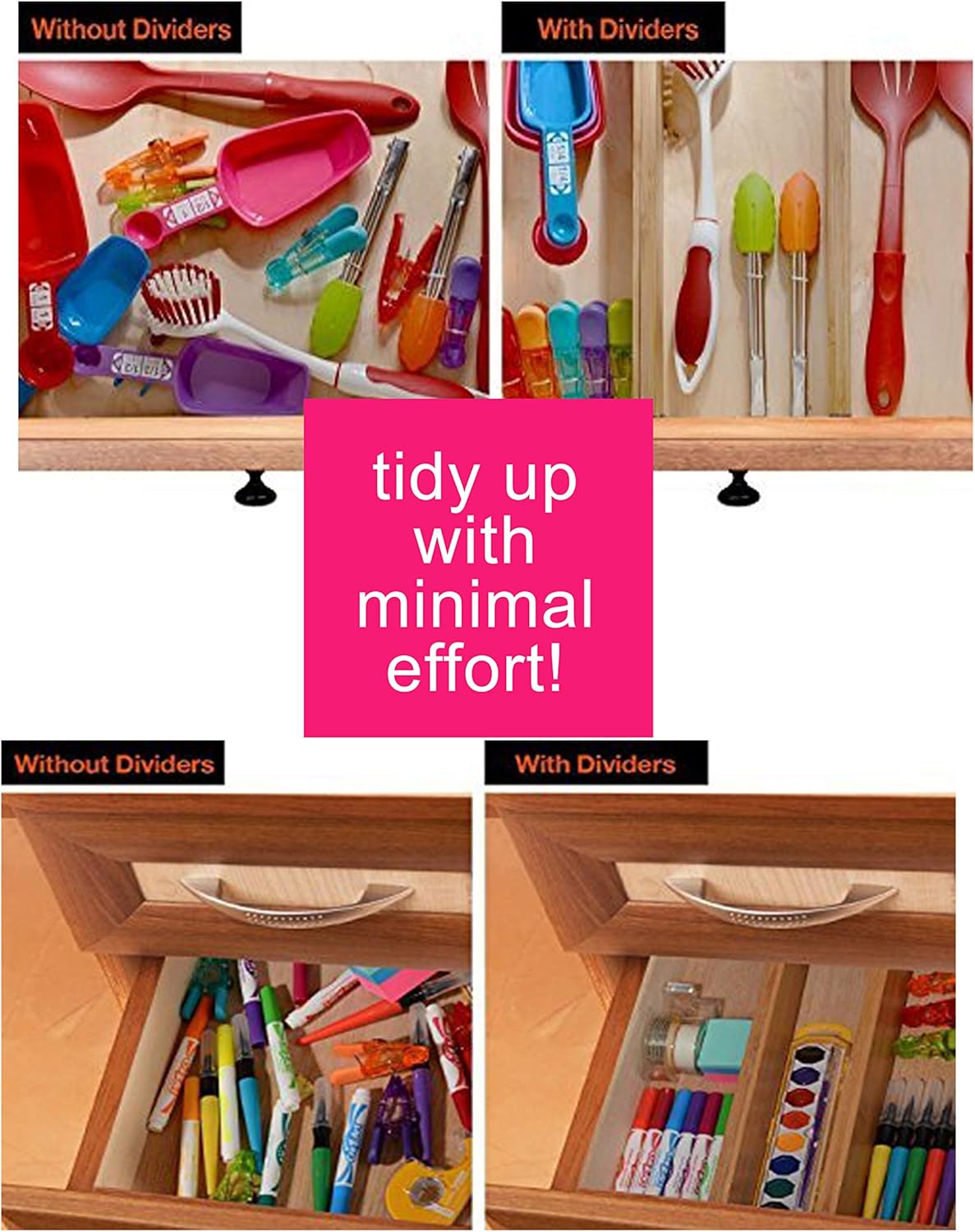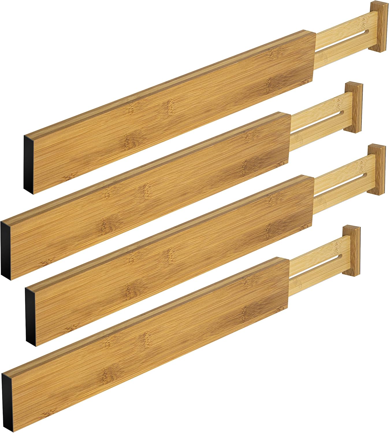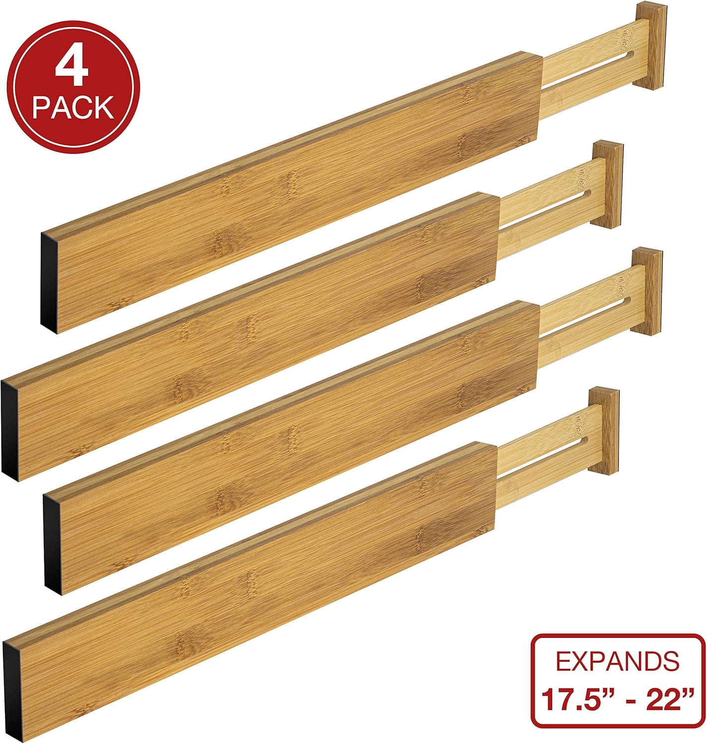 RAPTUROUS Divisores de cajones de bambĂș, 4 unidades, divisores de cajones de cocina de 2.75 pulgadas de alto, con resorte, 17.5-22 pulgadas de