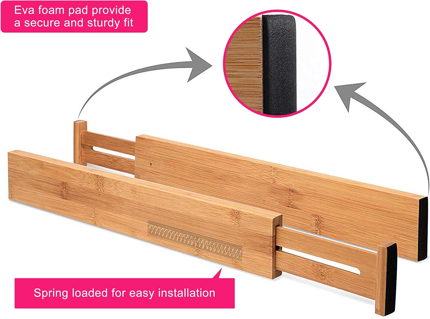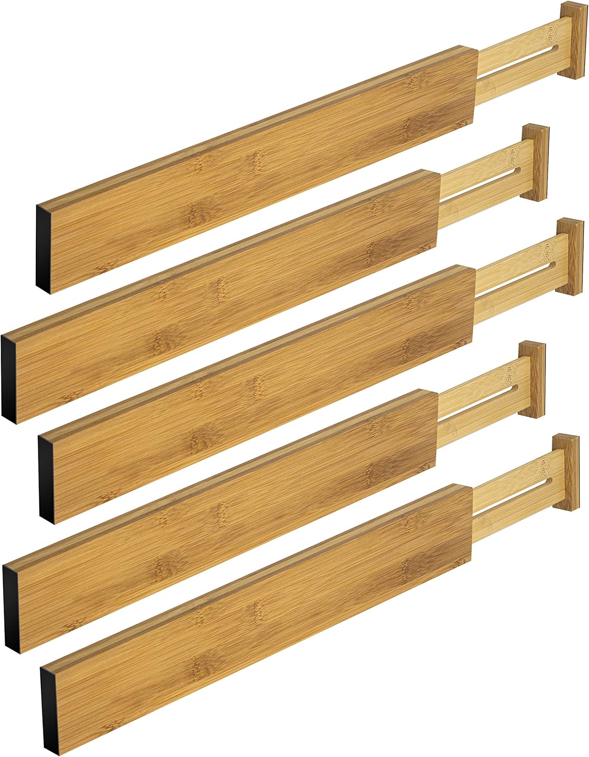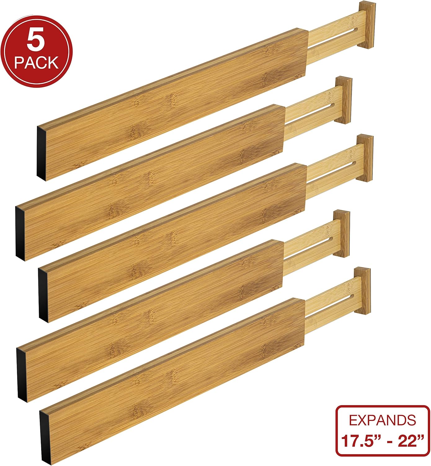 RAPTUROUS Separadores de cajones de bambĂș expandibles de 17.5 a 22 pulgadas, 2.40 pulgadas de alto, paquete de 5 divisores de cajones de cocina,
