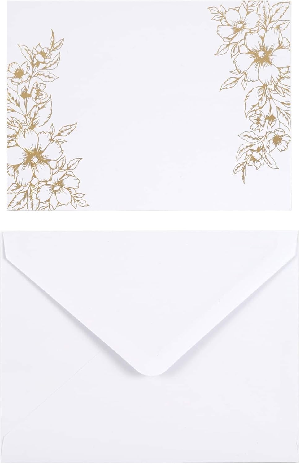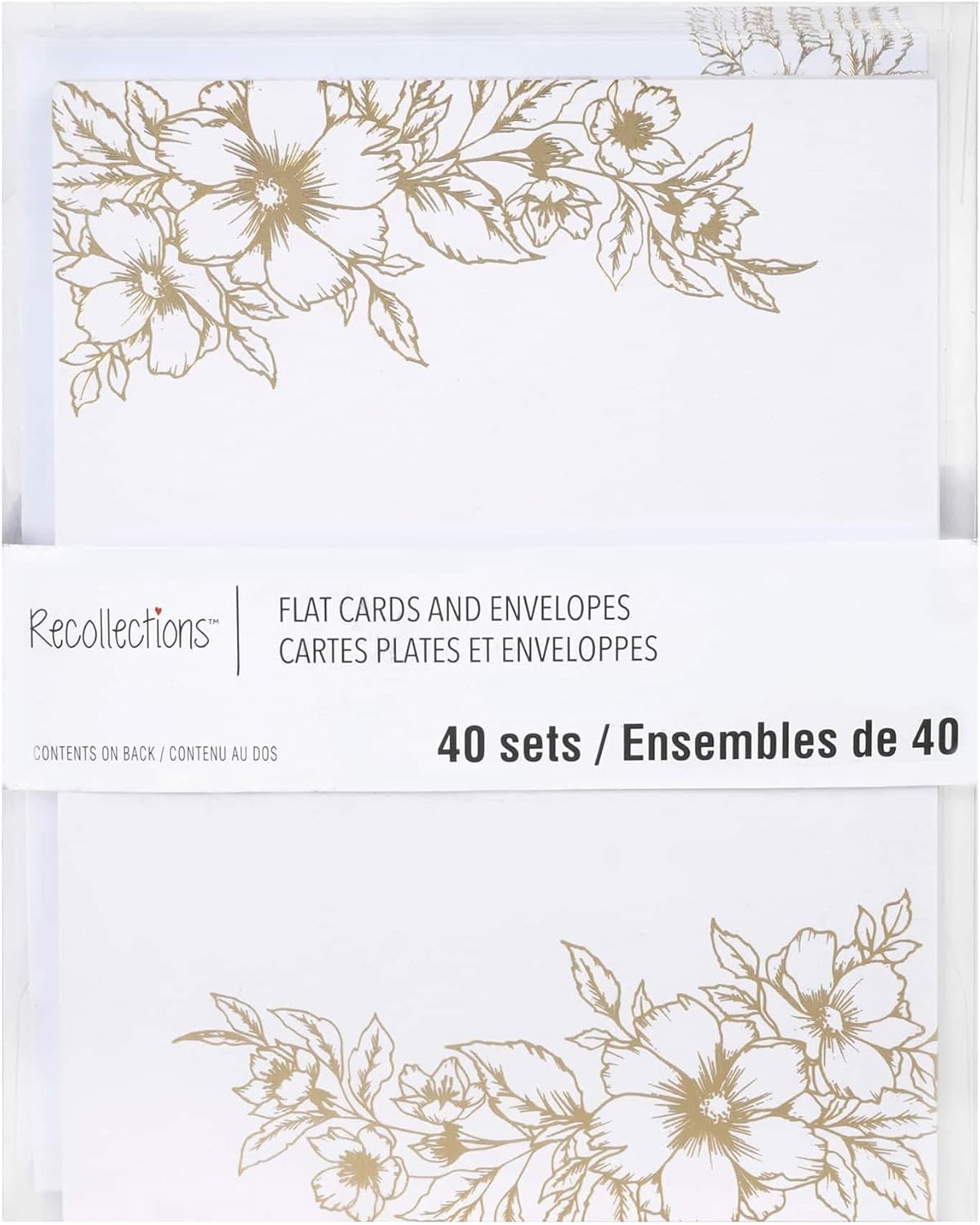Recollections Tarjetas y sobres planos florales dorados, 4.25 pulgadas x 5.5 pulgadas
