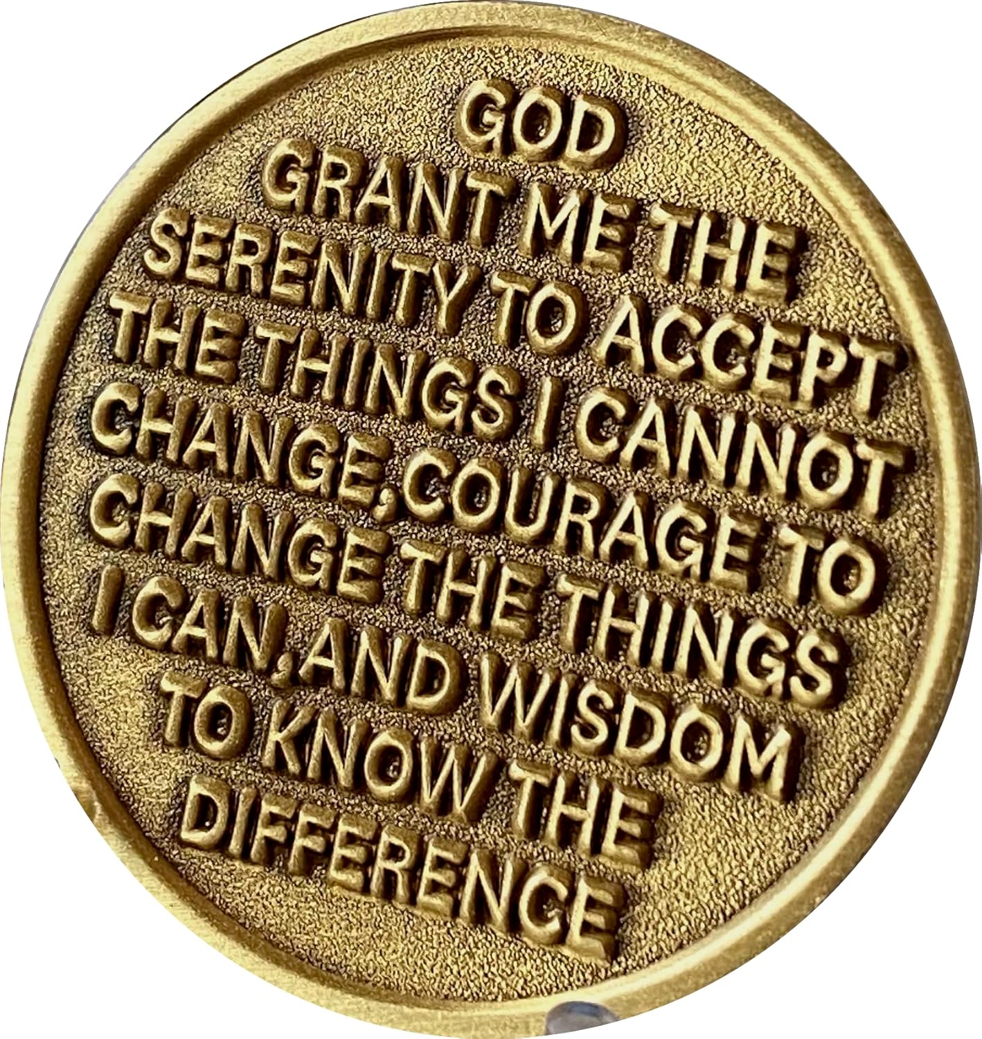 Medallón AA de 1 año de árbol Sakura con flores de cerezo en forma de Ying Yang. Blanco y negro sobre bronce La parte posterior de la moneda tiene la Oración de la Serenidad Gran artículo de regalo espiritual de 1.339×0.079 in