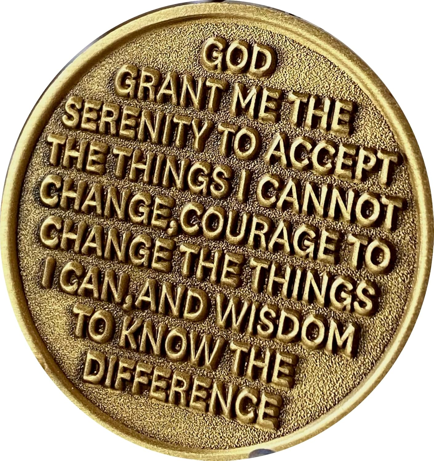 Medallón AA de 1 año de árbol Sakura con flores de cerezo en forma de Ying Yang. Blanco y negro sobre bronce, La parte posterior de la moneda tiene la Oración de la Serenidad, Gran artículo de regalo espiritual de 1.339×0.079 in