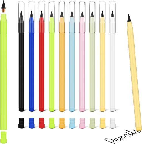 Ainiv 10 lápices sin tinta, lápiz infinito eterno con borrador, lápiz infinito reutilizable con 20 borradores adicionales, lápices infinitos