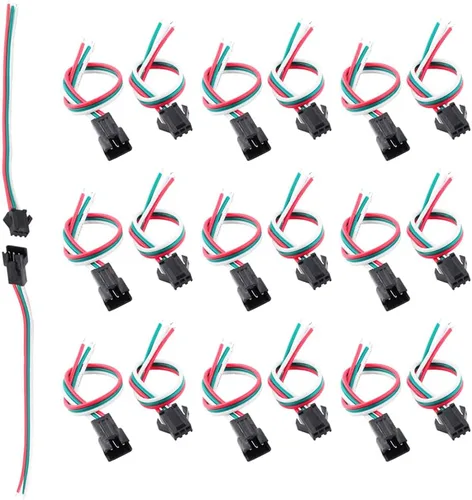 ▶ Se puede utilizar para la tira de luz LED CCT de WS2812B WS2811 WS2812 SK6812 FOCB CCT ▶ Fácil de usar, no necesita soldadura Diámetro del cable: 22 AWG Comprueba los colores de los cables y sus respectivas polaridades antes de conectarte a tu dispositivo ▶ Lo que obtendrás: 10 conectores macho JST SM de 3 pines + 10 conectores hembra JST SM de 3 pines