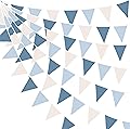 32Ft Blue Party Decorations Retro Blue Triangle Banner Flag Pennant Bunting Fabric Garland Streamers for Nautical Wedding Birthday Ahoy Achor Bridal