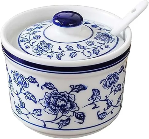 Pregunta sugerida sobre 123Arts Azucarero azul y blanco de cerámica para condimentos, olla de guiso, tarro de especias con tapa ¿Este producto sí me sirve para lo que necesito?