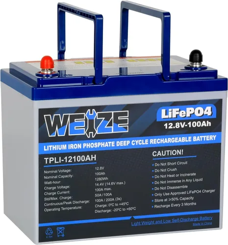 WEIZE 12V 100Ah Mini LiFePO4 Battery, Built-in 100A Smart BMS, Deep Cycle Lithium Iron Phosphate Battery Perfect for RV, Solar, Marine, Trolling