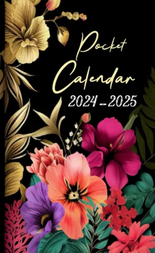2024-2025 Pocket Calendar Small Floral Two-Year Monthly Planner for Purse 24 Months from January 2024 to December 2025