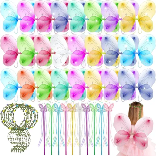 24 juegos de alas de hada para niños, alas de mariposa, disfraz de princesa, cosplay, corona, varita, cumpleaños