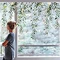 Whaline 9 Sheets Spring Summer Flowers Window Clings Eucalyptus Flower Glass Stickers Plant Hanging Vine Floral Leaf Reusable Decals Window Privacy