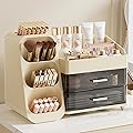 Makeup Organizers and Storage, Make up Organizer for Vanity Cosmetics Skincare Organizers With Lid and Drawers Display Cases for Countertop(White)