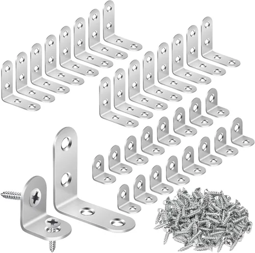 【Paquete de valor】 Este conjunto incluye 16 soportes en forma de L de 4 agujeros (40x40x16mm/1.57x1.57x0.63in), 16 soportes pequeños en forma de L de 2 agujeros (20x20x16mm/0.79x0.79x0.63in), con un grosor de 2mm/0.08in y una abertura de instalación de 5mm/0.2in. También se incluyen 100 tornillos (15 mm/0,59 pulg) con un diámetro de cabeza de tornillo de 7 mm/0,27 pulg y una caja de almacenamiento (14,78 cm x 8,00 cm x 1,60 cm). 【Sólido, duradero y seguro】 Los soportes y tornillos están hechos de acero inoxidable de alta calidad, que proporciona resistencia, durabilidad y resistencia a la rotura y deformación. La superficie de metal está recubierta con múltiples capas de pintura protectora, por lo que es impermeable, resistente al óxido y suave al tacto. Los extremos del soporte están diseñados con bordes redondos que son cómodos y seguros de manejar. 【Excelente soporte y refuerzo】 Los materiales de alta resistencia y el estricto diseño de ángulo recto de 90° permiten que estos soportes proporcionen un excelente soporte y refuerzo para los muebles. El diseño del soporte en L de 90° evita que los muebles se colapsen bajo cargas estructurales, impactos o fuerza. Estos soportes son sujetadores importantes que conectan dos componentes de muebles de madera. 【Fácil de instalar】 Los soportes de ángulo recto de 90° se pueden fijar fácilmente a las juntas de las esquinas de los muebles que necesitan reparación. La abertura de instalación de 5 mm de ancho facilita la colocación de tornillos mediante taladro. Cada tornillo tiene espirales profundas para un buen agarre, y el orificio de instalación hundido garantiza que el tornillo y el soporte se ajusten perfectamente, haciendo que tus muebles sean fuertes y visualmente atractivos. Amplias aplicaciones: estos soportes son perfectos para reforzar juntas en ángulo recto, por lo que es fácil reparar muebles tambaleantes. También son ideales para proyectos de bricolaje rápidos, como estanterías, armarios, mesas, sillas, cajones, camas, marcos de fotos, perchas, tocadores, sofás, cercas y armarios. Si eres un entusiasta de los muebles de bricolaje, debes tener este juego