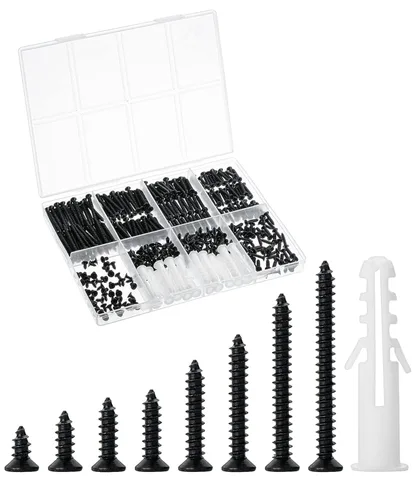 Mr. Pen - Kit surtido de tornillos para madera, 400 piezas, 20 anclajes de tornillo M6, puntas Phillips negras, cabeza plana, M3, juego surtido