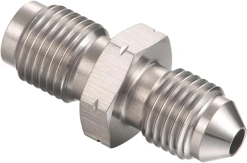 AN3 (3/8-24 UNF) macho a M10-1.0 Llamarada métrica invertida Fabricado en acero inoxidable 304 Estos adaptadores funcionan bien para adaptar cilindros maestros, cilindros de rueda, pinzas y otros componentes de freno y embrague a mangueras flexibles 3AN Compatible con combustible, aceite, líquidos de frenos, gasolina sin plomo, metanol y agua Todos los accesorios y adaptadores Podavelle están mecanizados CNC de precisión con el más alto estándar para una conexión duradera, apretada, segura y sin fugas