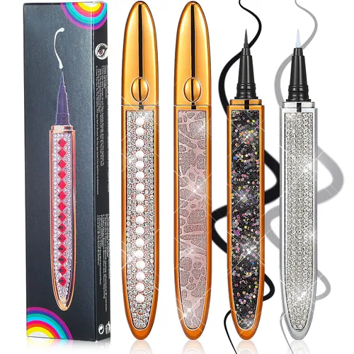 • Colorido juego de delineadores de ojos: el paquete incluye 4 piezas de delineadores de ojos autoadhesivos de diamante, hay 4 estilos diferentes para que elijas, algunos en estilo de purpurina y otros en estilo de cuero, aspecto delicado en una carcasa de oro rosa, incrustadas con taladro completo, perlas de imitación y piel sintética suficiente para satisfacer tus necesidades de uso diario y reemplazo Suavidad adecuada: el delineador de ojos de diamante tiene una punta suave con una punta moderadamente suave y dura, por lo que es conveniente para que puedas dibujar un bonito delineador sin esfuerzo