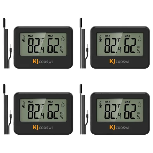 Una máquina de doble uso: simplemente coloque la sonda del sensor en el lugar que desea medir la temperatura, tenga en cuenta que la sonda del sensor es impermeable, se puede utilizar como termómetro de acuario. Pero el termómetro no es impermeable. La sonda con cable era solo para temperatura, no para humedad. También puede medir temperatura y humedad sin usar una sonda Registros MAX & MIN: Este termómetro digital higrómetro muestra niveles de temperatura alta/baja y humedad para permitirle realizar comparaciones adecuadas utilizando los datos de su entorno. Alta precisión y velocidad de actualización rápida: este termómetro interior cuenta con una alta precisión de ± 5% HR y ± 1.8 °F, lo que lo hace ideal para medir lecturas fluctuantes como las que se encuentran en un invernadero; las mediciones de datos se actualizan cada 10 segundos para brindarle las últimas actualizaciones sobre su entorno Baterías de larga duración de 12 a 18 meses: cada pequeño medidor de temperatura y humedad está alimentado por una batería de botón CR2032 de larga duración, fácil de comprar y reemplazar, que ya está instalada en el monitor de humedad del termómetro. Múltiples opciones de colocación: Este humidistato tiene 2 opciones de colocación: soporte de mesa y parte posterior magnética. Coloque el termómetro de pared en cualquier lugar que desee, como humidor, invernadero, jardín, armario, estuche de guitarra. La sonda con cable era solo para temperatura, no para humedad.