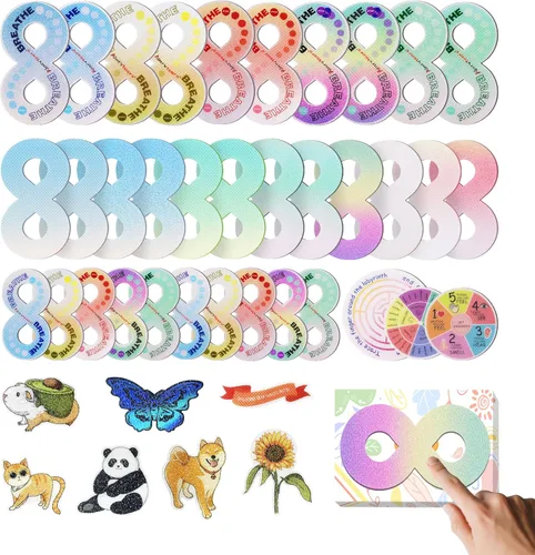 42 Pierces - Calcomanías calmadas para la ansiedad, sensoriales, antiestrés, táctiles, texturizadas, combinadas con ejercicios de respiración, tiras