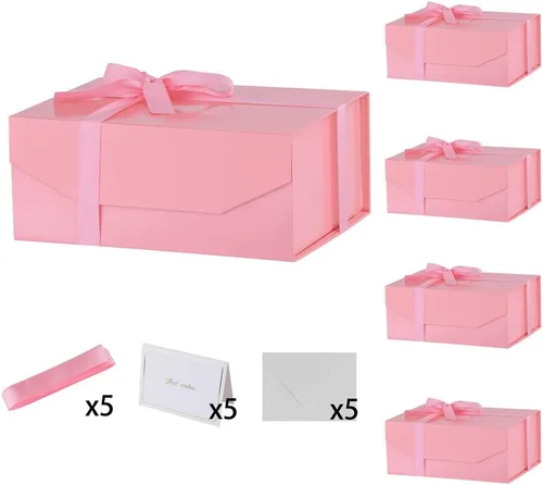 5 cajas de regalo rosa con cinta de 9.5 x 7 x 4 pulgadas, caja de regalo resistente con tapa para embalaje de regalo, cajas de almacenamiento