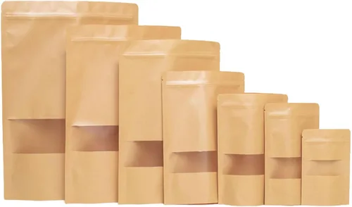 Estas bolsas Kraft con ventana son perfectas para diversas necesidades de embalaje. Fabricados con una combinación de CPP de grado alimenticio y papel Kraft, ofrecen durabilidad y una estética natural. Ideal para almacenar alimentos como aperitivos, café o especias, la ventana transparente permite a los clientes ver fácilmente el contenido. Ofrecemos 7 tamaños diferentes: 3.55.5", 4.77.8", 5.57.8", 6.28.6", 710", 812" y 10* 14", y cada tamaño está disponible en cantidades de 50, 100, 200, 300 y 500, lo que le da la flexibilidad de elegir de acuerdo a sus necesidades. Ideal para almacenar bombas de baño, aperitivos, nueces, masa madre, galletas, dulces, café, carne seca, granos, avena, golosinas para mascotas y así sucesivamente. Estas bolsas no solo son prácticas sino también ecológicas, lo que las convierte en una excelente opción tanto para uso doméstico como comercial.