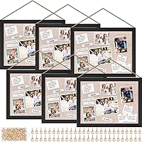 Teling Juego de 6 tableros de anuncios de madera con lino de 30 x 41 cm, tablero de corcho para paredes con 60 chinchetas decorativas, marco de Negro