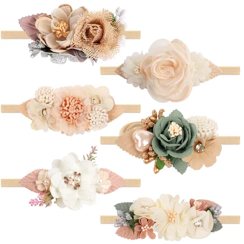 6 diademas de nailon con flores para bebé, lazo hecho a mano para recién nacido (multicolor-2, L)