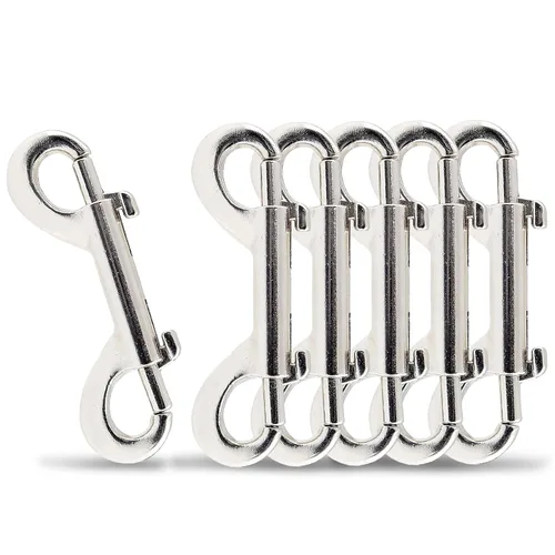 Construido para durar: nuestros broches de doble extremo están hechos de aleación de zinc de alta calidad con proceso de pulido de níquel, que es duradero y resistente. Resistente a la intemperie, al óxido y a la corrosión. Son fuertes y están bien hechos, se pueden soportar en la mayoría de las aplicaciones y te sirven durante mucho tiempo. 【Fácil de usar】El paquete viene con 6 ganchos de presión (2.7 pulgadas). Más de decenas de miles de pruebas de resorte para garantizar la apertura suave y la buena resistencia. Solo tienes que sostener los broches de gatillo, tirar de la palanca del pulgar hacia abajo con el pulgar o la uña, y enganchar los itmes.Luego suelta la palanca, los broches de perno sujetarán tus itmes de forma segura. Diseño práctico: el diseño de doble extremo de broches de perno lo hace más versátil que el gancho normal de un solo extremo. El botón para abrir los extremos es grande, por lo que se puede utilizar para hacer una conexión rápida y reversible en cuerdas o a otro componente. La superficie lisa está pulida de espejo para una sensación de agarre cómoda. Ampliamente utilizado: los ganchos de doble extremo se pueden utilizar ampliamente con correas, cinturón, cuerda, cadenas, correas para mascotas/animales, cierres de puerta, arneses, tachuelas de caballo y otras aplicaciones en el hogar, granja, recreación y navegación. Perfecto para jardín, deporte, mascotas, gimnasio, escuela, etc. Juega un buen papel para proyectos de conexión en interiores o exteriores. Diseño de borde liso: nuestros broches de tornillo de doble extremo cuentan con un diseño de borde liso, lo que garantiza una comodidad y seguridad durante el uso. Este diseño no solo mejora el atractivo estético, sino que también protege eficazmente tus manos de arañazos.