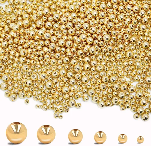 Tamaño: 2.5 mm, tendrás más que suficiente para crear múltiples piezas impresionantes de joyería Cantidad: 600 piezas de cuentas espaciadoras redondas de oro laminado de 14k en total. Cantidad suficiente para satisfacer tus diversas necesidades de decoración y fabricación de joyas de bricolaje Materiales: las cuentas están hechas de latón con relleno de oro de 14 quilates para resistir el deslustre con el tiempo. Calidad más confiable que otras cuentas de plástico CCB con revestimiento de metal Aplicación: Las cuentas de oro de 14k se aplican ampliamente en todo tipo de manualidades, como collares, aretes, pulseras, etc. También puedes mezclarlas y combinarlas en diferentes combinaciones para crear decoraciones de joyería personalizadas, o incluso regalos DIY para tus amigos o familiares Regalos para manualidades: regala estas cuentas doradas a familiares, amigos, colegas, compañeros de clase que aman hacer manualidades con cuentas como un buen regalo, en cumpleaños, Navidad y otros días, para mejorar tu relación