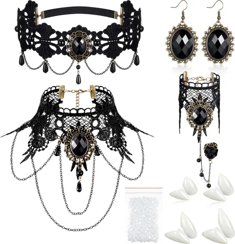 Pregunta sugerida sobre 8 piezas de Halloween de dientes de vampiro colmillos de vampiro, gargantilla, pulseras góticas de disfraz para vampiro victoriano, fiesta ¿Este producto sí me sirve para lo que necesito?