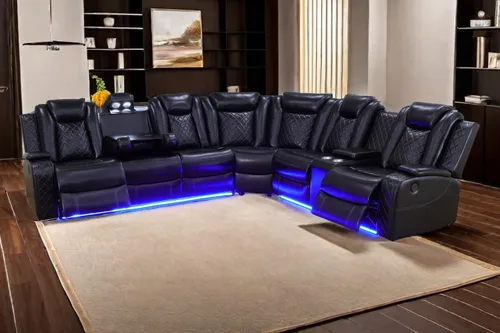 A Ainehome Juego de sofá reclinable eléctrico, juego de sofá modular de cuero para sala de estar, cine en casa, con luces LED, soporte para tazas,