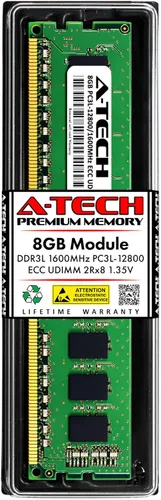 A-Tech Memory RAM compatible replacement for UCS-MU-1X082RY-F= Single 8 GB Module; DDR3/DDR3L DIMM 240-Pin; Speeds up to 1600 MHz, PC3L-12800/PC3L-12800E (PC3-12800/PC3-12800E) ECC Unbuffered UDIMM; 2Rx8 (Dual Rank x8); JEDEC DDR3L standard 1.35V (Dual voltage, can operate at 1.35V or 1.5V) Compatible for select Cisco servers, workstations, and systems; *Not compatible for desktop or laptop computers/PC* Expands your system's available memory resource improving performance, reducing bottlenecks, and increasing workload capacity Note: This memory is ECC Unbuffered and cannot be mixed with different ECC types such as ECC Registered, ECC Load Reduced, or Non-ECC Unbuffered; (Refer to your system's manual for memory seating and channel guidelines) Backed by A-Tech's Limited Lifetime Warranty and supported by our knowledgeable Tech Team available to help before and after your purchase