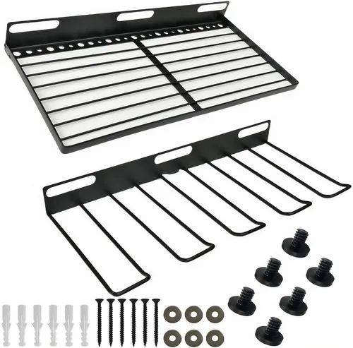 Juego de 2 prácticos estantes para añadir más espacio de almacenamiento a tu cobertizo; perfecto para artículos pequeños que necesitan contenedores para organizarse durante todo el año Construcción duradera que garantiza que cada unidad de almacenamiento pueda contener hasta 35 libras de herramientas, equipos y accesorios El sistema de montaje EZ Bolt permite una instalación rápida; se puede montar en la pared trasera del cobertizo para un fácil acceso Proporciona más oportunidades de almacenamiento en tu cobertizo; una gran manera de mantener tu cobertizo limpio y ordenado; evita que los objetos pequeños se pierdan o destruyan Compatible con una variedad de otros enrejados Suncast para mayor versatilidad; Material: Metal; Color: Negro; Peso: 2.6 libras; Cantidad: 2