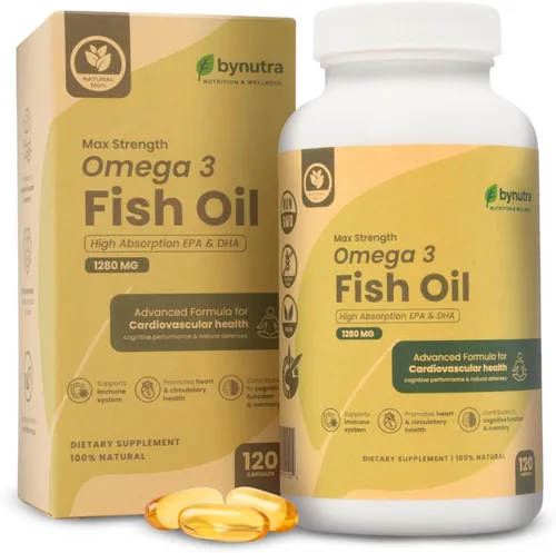 Aceite de pescado Omega 3 – Max Strength 1280 mg cápsulas blandas con EPA 650 mg y DHA 450 mg – Cápsulas de aceite de pescado Omega-3 de alta