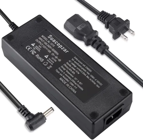 Convertidor CC 12 V 10 A: conversión de corriente doméstica de 100 V-240 V CA en una fuente de alimentación de 12 V 10 A CC, equipada con indicador de carga LED. La longitud del cable de alimentación es de aproximadamente 4.9 ft/5 pies de CA + 3.6 ft/3.6 pies de línea de CC. NOTA: Debe ser 12V DC, no ser inferior/superior a 12V DC. Asegúrese de que sus productos electrónicos con potencia nominal inferior a 10A 120W Nota importante: salida de voltaje constante de 12 V CC y suministro con todos los dispositivos que consumen menos de 10 A, como 1A, 2A, 3A, 4A, 5A, 6A, 7A, 7.5A, 8A, 9A, 10A, etc. Recomendamos utilizar el 80% (8A) de la carga completa. NUNCA SOBRECARGAR!!! Por favor, debe comprobar las especificaciones de su dispositivo antes de realizar el pedido Protección de fuente de alimentación integrada: garantiza un uso seguro con protección contra sobrevoltaje, sobrecorriente y sobretemperatura para mantener todos tus dispositivos móviles a salvo de sobretensiones y picos inesperados. Amplio rango de voltaje de 100 V a 240 V lo hace adecuado para viajes Amplias aplicaciones: este adaptador de corriente de 12 V 10 A es perfecto para dispositivos de 12 V de menos de 120 W, como ideal para tiras LED, impresora 3D, transceptor de radio de jamón, cámaras CCTV, amplificador de subwoofer de automóvil, amplificador de audio, enrutador inalámbrico, gatos ADSL, HUB, fuente de alimentación de audio/video. Solo para uso en interiores Diseño de enchufe: el diámetro externo del conector de CC es de 0.217 in, el diámetro interno es de 2.1 a 0.098 in. Compatible con interfaz de 0.217 in x 0.083 in. La polaridad interior es positiva (+) y la polaridad externa es negativa (-)