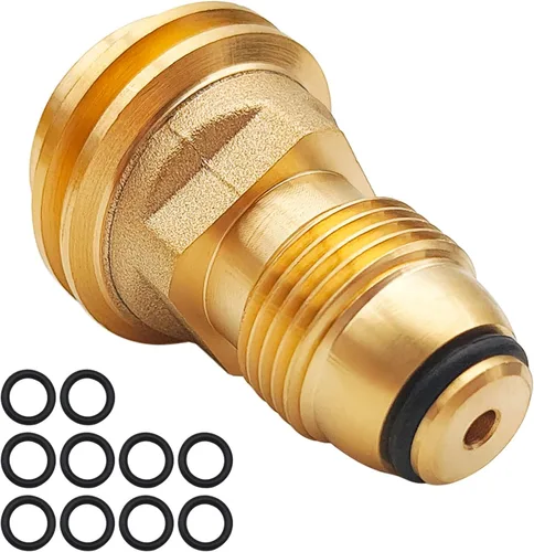 Cuerpo de válvula de latón macizo: el adaptador de tanque de propano está hecho de latón de alta calidad, que es resistente a la corrosión, no propenso a fugas, y seguro y confiable. La junta tórica del tanque de propano está hecha de goma de alta calidad, con un diámetro exterior de aproximadamente 0.59 pulgadas / 0.6 in y un diámetro interior de aproximadamente 0.39 pulgadas / 0.4 in. Puede mantener la flexibilidad en los cambios de temperatura. Fácil de usar: el adaptador de propano y la junta de goma se pueden conectar rápidamente al equipo de propano, con una conexión suave que no cruza las roscas ni se une, asegurando una conexión completamente sellada entre POL y QCC1 y evitando fugas. Todo el proceso de conexión y desconexión es seguro y gratuito. Compatibilidad general: Aplicable a todos los tanques POL estándar (40-100 libras) y reguladores QCC1 Flujo de gas inmediato: cuando la válvula está abierta, no hay límite de flujo ni retraso. Es adecuado para reutilizar tanques de propano viejos, campamento de RV, cocina de estufa al aire libre, calefacción de patio, calefacción de respaldo y preparación para emergencias. Funcionalidad práctica: La ventaja de usar un adaptador de propano es obtener propano más barato por galón en tanques de almacenamiento más grandes, extender la vida útil de los tanques de almacenamiento de propano y mantener la compatibilidad con equipos modernos al mismo tiempo. Kit de montaje de juntas de propano: incluye 1 adaptador de manguera de propano y 10 juntas tóricas de tanque de propano. De tamaño compacto, puede evitar interferir con la colocación del tanque. El adaptador funciona normalmente dentro del rango de -20°F a 120°F, sin caída de voltaje significativa. Nota: Después de la instalación, asegúrese de verificar si hay fugas con agua y jabón.