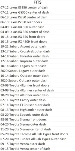| Compatibilidad con tipo de vehculo | [Parcial] Lexus, Subaru |