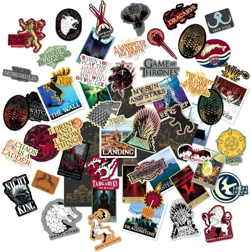 Adhesivos de vinilo de Juego de Tronos de Conquest Journals, 60 calcomanías únicas que incluyen 5 hologramas, impermeables, resistentes a los rayos