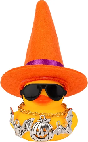 Adornos de pato de goma para automóvil, decoración de tablero de automóvil de pato amarillo con mini sombrero de bruja, collar de gafas de sol y