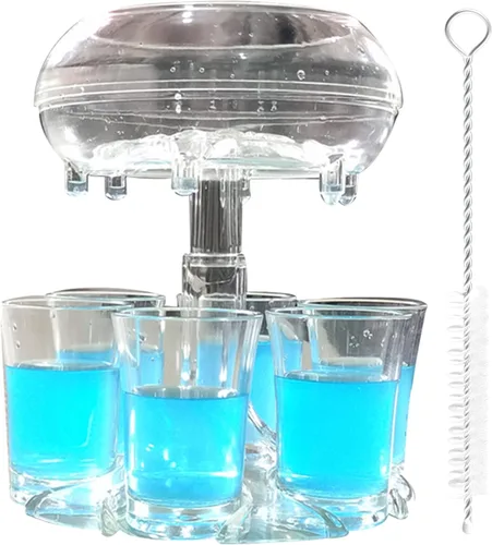 ¿Para qué sirve ALEVMOOM Dispensador de 6 chupitos y soporte para llenar líquidos, múltiples barras de 6 chupitos, dispensador de bebidas con cepillo?