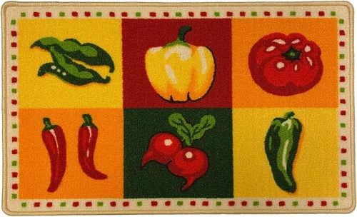 Pimientos de chile súper picantes en tu cocina con la alfombra de cocina estampada con chile picante. Con seis tipos diferentes de pimientos como decoración principal sobre un fondo multicolor con un borde punteado de rojo y verde. La parte trasera antideslizante proporciona seguridad para niños y adultos al mantener la alfombra en su lugar y evitar resbalones. Este tapete de cocina animará tu cocina y el material suave y resistente añadirá algo de comodidad mientras trabajas limpiando platos, preparando verduras, cocinando y tal vez incluso preparando una taza de café. Cuando se trata de cuidar tu nueva alfombra de cocina, puedes ahorrar tiempo colocándola en la lavadora en un ciclo cálido. También se puede lavar a mano. No usar blanqueador ni limpiar en seco. Secar a la sombra. COLOR: Amarillo, Naranja, Verde, Rojo. DIMENSIONES: 18x30 pulgadas. Detalle del producto: Peso: 0.7938 lbs