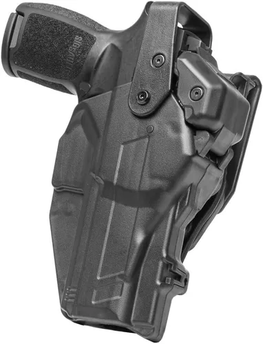 Retención de nivel 3 con capucha: retención pasiva ajustable, así como un componente de retención activo que es retenido por el puerto de expulsión para asegurarse de que su arma de fuego esté segura. También tiene la correa trasera física que va alrededor de la parte posterior del tobogán para un tercer nivel de retención que tiene una cubierta de capó para proteger una amplia variedad de ópticas de pistola montadas en deslizamiento. Ajuste personalizado para Glock 19, 19X y 92 Respuesta motora bruta: Diseñado para ser un sistema extremadamente intuitivo con solo presionar un botón y luego deslizar el pulgar hacia atrás, lo que lo convierte en un dibujo extremadamente natural que ahorra tiempo cuando el tiempo es lo más importante Protector de botón defensivo: para ayudar a evitar que cualquier cosa o cualquier persona derrote la retención de bloqueo durante un rasguño, asegurándote de que tu arma de fuego se mantenga segura. Rodamiento de luz universal: Se adapta a una gran variedad de luces montadas en pistola, pero aún conserva el arma de fuego con o sin la luz de la pistola. Fabricado con orgullo en los Estados Unidos: asegurando el uso de materiales de alta calidad y artesanía estadounidense trabajadora para ofrecerte una funda en la que puedes confiar