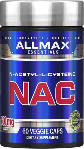 Apoyo y protección: aumenta tu sistema inmunológico y mantén tu cuerpo saludable con NAC. Esta fórmula ayuda a aumentar los niveles de glutatión, que se considera el antioxidante más poderoso y ayuda a neutralizar los radicales libres. ALLMAX Uso sugerido: tomar una cápsula una vez al día. Fórmulas profesionales: confiadas por atletas y entusiastas del fitness, nuestras fórmulas están diseñadas para optimizar tus entrenamientos y ayudarte a lograr tus objetivos de fitness. Todos los ingredientes son puros, de alta calidad y cumplen con el grado farmacéutico.