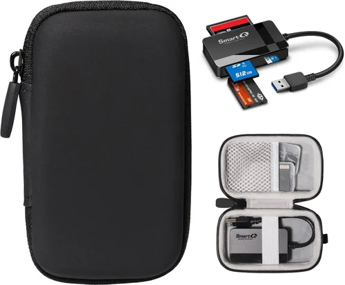 Funda para lector de tarjetas SD y tarjetas de memoria, compatible con Apple Lightning a SD Card Camera Reader, SmartQ C368/C307, UGREEN, Uni, Beikell, Oyuiasle, SUNTRSI, etc Diseño de protección garantizada con bolsillo de malla y correa elástica, mantiene tu lector de tarjetas SD y tarjetas de memoria organizados y seguros. Estuche compacto y ligero, perfecto para un fácil almacenamiento en casa y viajes. Para la venta es solo CASO, dispositivo no incluido.