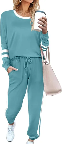 Aloodor conjunto deportivo de 2piezas para mujer, con sudadera con cuello redondo, sin botones