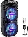 Altavoz Bluetooth portátil con subwoofer de graves ricos estéreo estéreo estéreo para exteriores/interiores, luces de DJ, micrófono, grabación