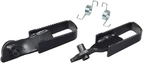 Juego de dos estriberas con muelles, lado izquierdo y derecho incluidos. Se utiliza con mayor frecuencia en las mini bicicletas Monster Moto y Motovox. También se puede utilizar en otras mini bicicletas de 80 cc, 97 cc o 105 cc.