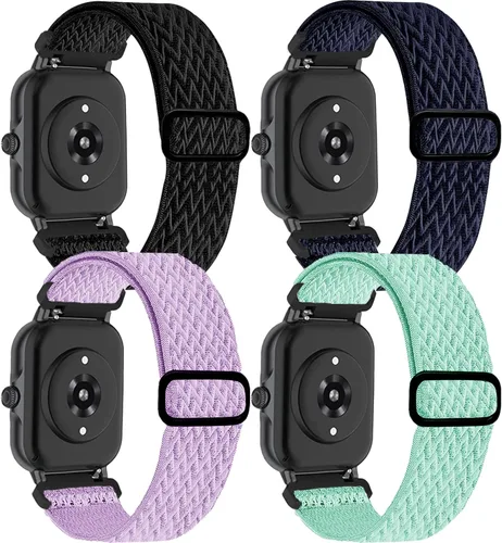 AMAZ FIT - Paquete de 4 correas elásticas para reloj compatibles con GTS/GTS2/GTS 3/2e/2 mini/4 mini, nailon elástico de 0.787 pulgadas para Bip U