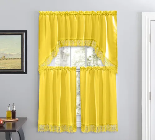 American Linen Cortinas de café para cocina, cortinas de baño con cenefa, borde de encaje bordado. (amarillo)