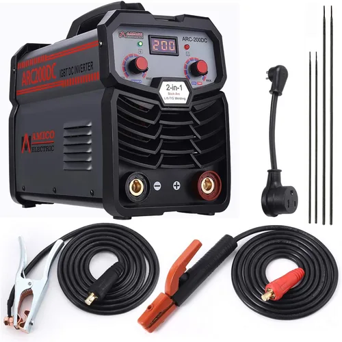 ARC-200DC es una máquina de soldadura combinada profesional Stick Arc y Lift-TIG con un diseño de nivel industrial. Es compatible con todos los electrodos: E6010, E6011, E6013, E7014, E7018, etc. La máquina tiene una excelente función de soldadura por arco Lift-TIG; 10-200A suelda cómodamente acero inoxidable delgado y otros diversos metales. La función de selección automática detecta el voltaje de entrada automáticamente, lo que le permite cambiar fácilmente entre potencias de entrada de 100-250V/50-60Hz. Se pueden utilizar casi todos los voltajes y frecuencias. Los ajustes de fuerza de arco ajustables le permiten satisfacer sus necesidades de soldadura personalizadas. Incorpora tecnología avanzada de inversor IGBT con características de arco superiores y tiene una excelente estabilidad del arco. El ciclo de trabajo del 80% a 200 amperios garantiza una soldadura prolongada y la máquina aún puede funcionar normalmente con un cable de alimentación extendido de hasta 700 pies. El cable de alimentación puede resistir las fluctuaciones de alimentación y la atenuación del cable a cualquier longitud. ARC-200DC tiene funciones muy potentes, por lo que es fácil de iniciar y usar. La máquina tiene una función de arranque en caliente incorporada, función antiadherente, función de ajuste de empuje, función de control de intensidad de corriente y compensación automática para las fluctuaciones de voltaje: protección contra sobretensión, protección de bajo voltaje, protección contra sobrecorriente y protección contra sobrecarga. ARC-200DC Stick Arc con Lift-TIG puede lograr la soldadura perfecta. Es una máquina de soldadura del más alto nivel; la resistencia de sus componentes la convierte en una herramienta de trabajo confiable para profesionales o individuos. El paquete incluye 7 pies de cable de alimentación, 10 pies de montaje de soporte de electrodos de 300 amperios, 10 pies de conjunto de abrazadera de conexión a tierra de 300 amperios y un adaptador de alimentación de 230 V a 110 V.