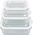 Sio GLASS storage containers with GLASS lids, NO PLASTIC, Set of 3, Airtight Small Medium Large for Food Meal Prep, Silcone Bowl Container (White)